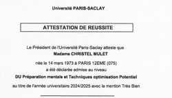 En 2025, j'ai approfondi mon approche de la préparation mentale avec un Diplome Universitaire en Techniques d'Optimisation du Potentiel à l'université Paris Saclay.
